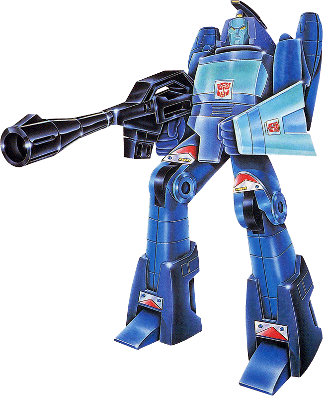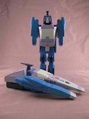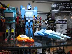 Abilities: In robot mode, he carries an electro-laser that reverses the polarity of an enemy robot's microcircuits and leaves him motionless. His humanoid mode is built for speed - and he looks longer and leaner than most Autobots. When he's in his vehicular mode, he is a racing car that routinely breaks the speed of sound and then some, leaving a trailing image as it hurtles across distances.