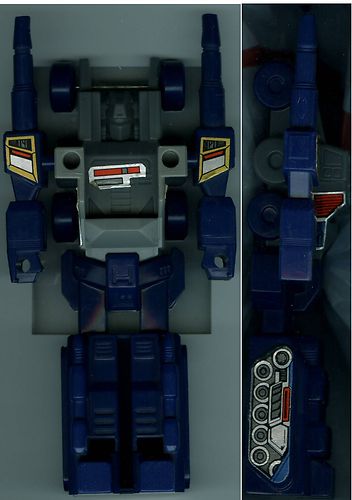 Valiant, courageous, a warrior without peer... but peace is his most fervent wish. Fights only out of necessity; believes all violence is ultimately pointless and counterproductive. Transforms to battle station and city modes. Armed with retractable pulse cannons, twin automatic machine gun batteries on wrists, twin laser-guided mortars on legs, heat-seeking dual laser blasters and fusion-powered photon rifle. Has communications, detection, and repair equipment. Controls two armored vehicles, Gasket and Grommet, which combine to form Cog. Head transforms to semi-autonomous Cerebros, who is binary-bonded to the Nebulan leader, Spike. | |||||||