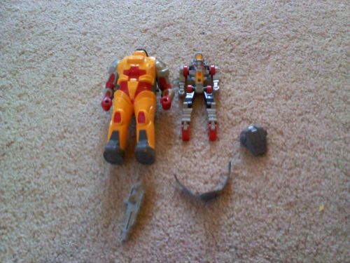 A hard-working hothead. Always concerned with getting the job done right. Outer shell constructed of high density Cybertronic alloy, impervious to most armaments. Outside his shell, transforms into all-terrain, exploration vehicle. Mining activities facilitated by electromagnetic, sonic, thermal, chemical and radiation scanners. Armed with laser saber and astro blaster that shoots concentrated bursts of incendiary explosives. | |||||||
