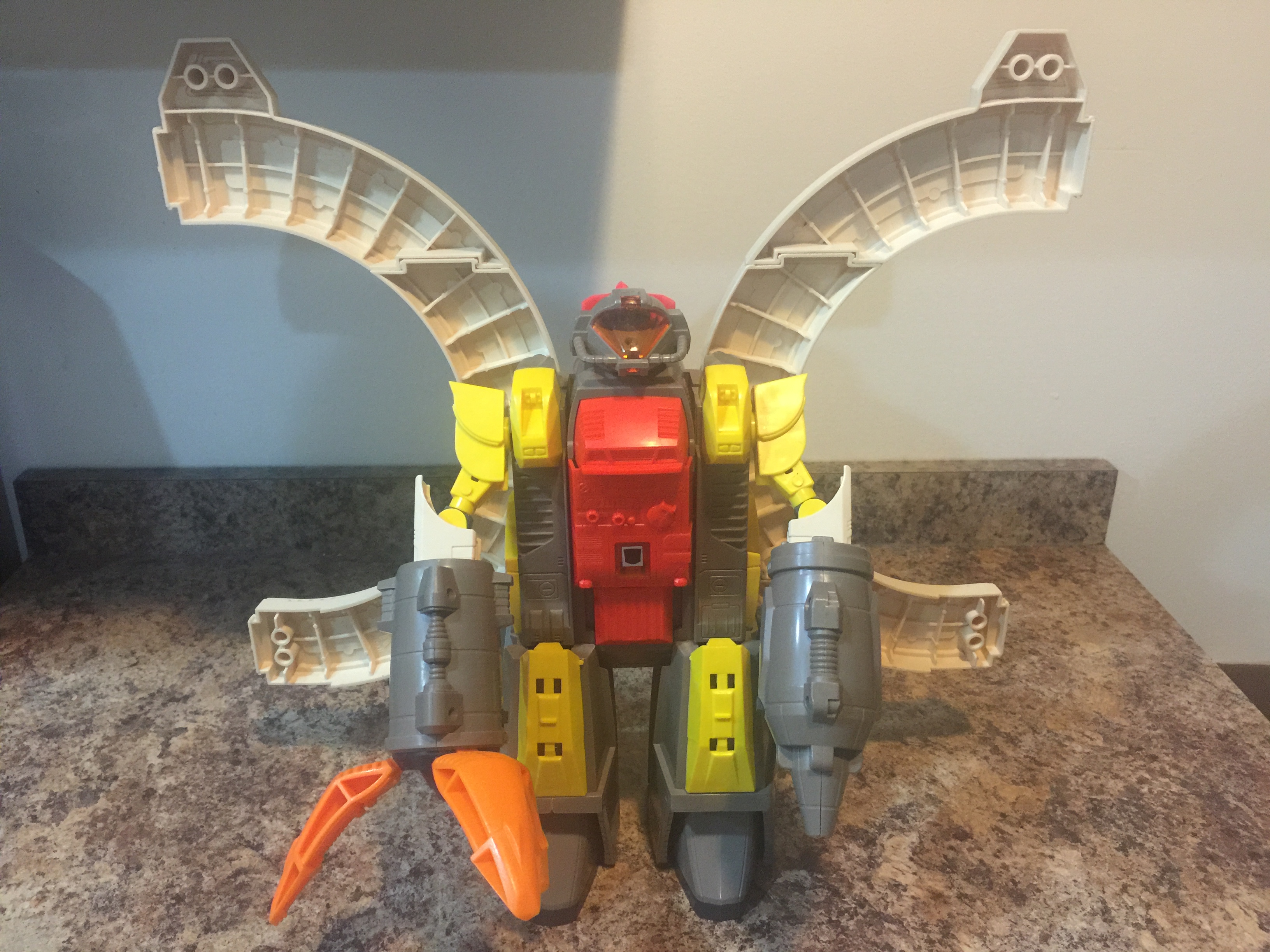 **Omega Supreme is a piece that I worked over an extended period of time to complete.  It started with one that worked but had many nics and dings and was missing parts.  I later picked up another that was better cosmetically, but was missing other parts and would not work due to problems with battery terminal and one leg.  I combined the two, and made one good and working one, but he was still missing the 6 leg clips.  In November 2015, I found a set of all 6 on eBay and picked those up, and he is now good and complete.  He could use stickers, but pretty nice otherwise.**