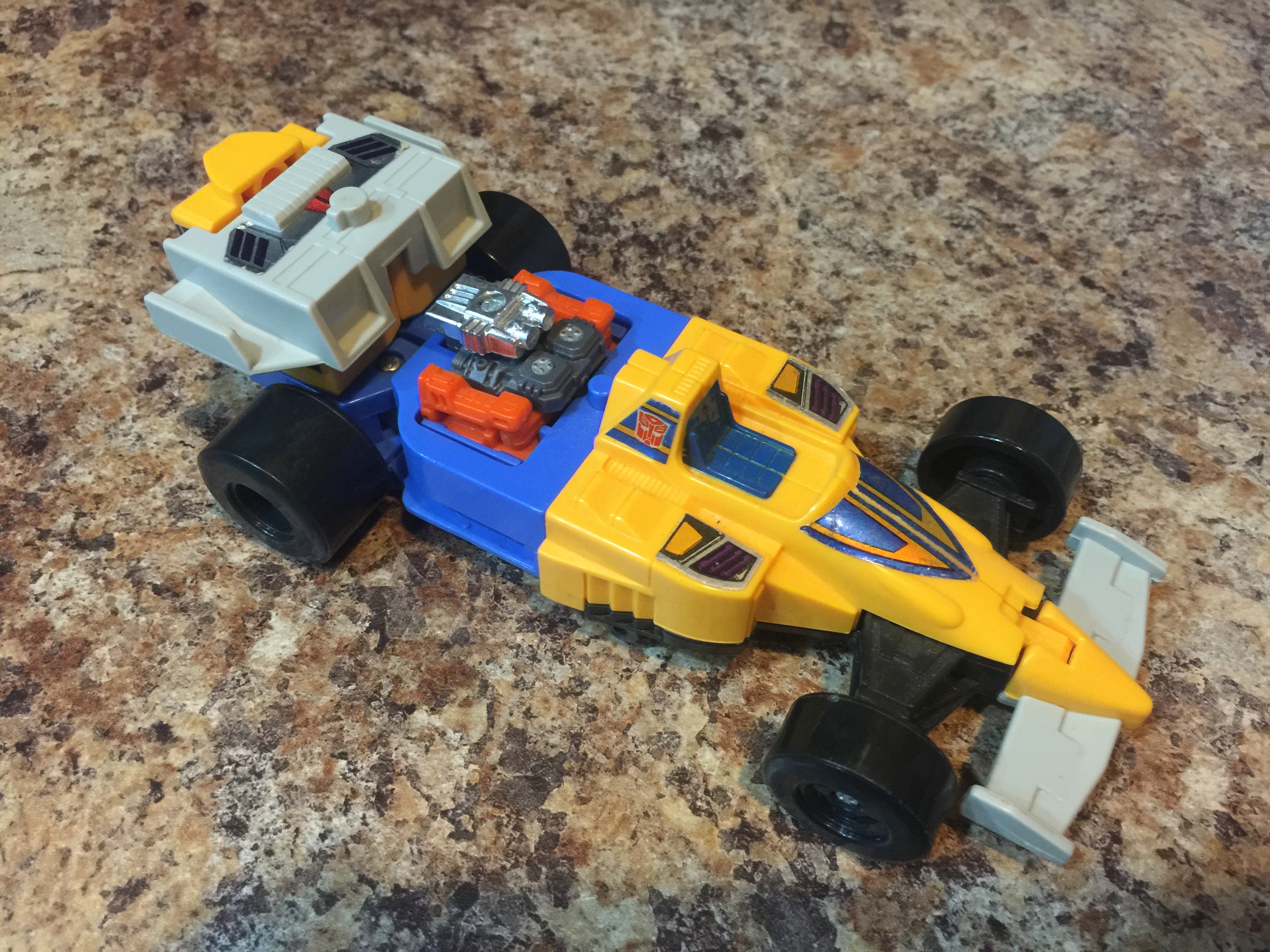 ** Got Slapdash in October 2015 on a good deal from a local seller I met on eBay.  He was incomplete at purchase, but already worked to fix that. He came with his Powermaster Lube, Engine and Rear Spoiler.  He was missing his Laser gun, but I purchased one off of eBay, and now is complete.**