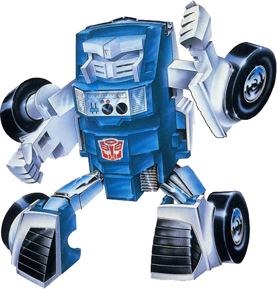 Profile: In the words of Optimus Prime, "Tailgate sometimes has his mind stuck in low gear!" A lot of what Tailgate thinks is just plain screwy. Although he understands Earth traffic laws, he doesn't agree with many of them. For example, he believes the 55 mph speed limit is an infringement upon the personal rights of cars. In fact, all his views on Earth machines are warped. He likens cars locked in garages to imprisonment without a fair trial. He considers the buying and selling of household appliances to be slave trading. Efforts by his fellow Autobots to convince Tailgate that Earth machines are not alive, and therefore not entitled to the same rights as Transformers, have so far failed. "Only barbarians treat the lesser among them so cruelly," proclaims Tailgate. Unfortunately, the oppressed in this case can never appreciate the efforts of their would-be-savior. Tailgate is not a well robot.