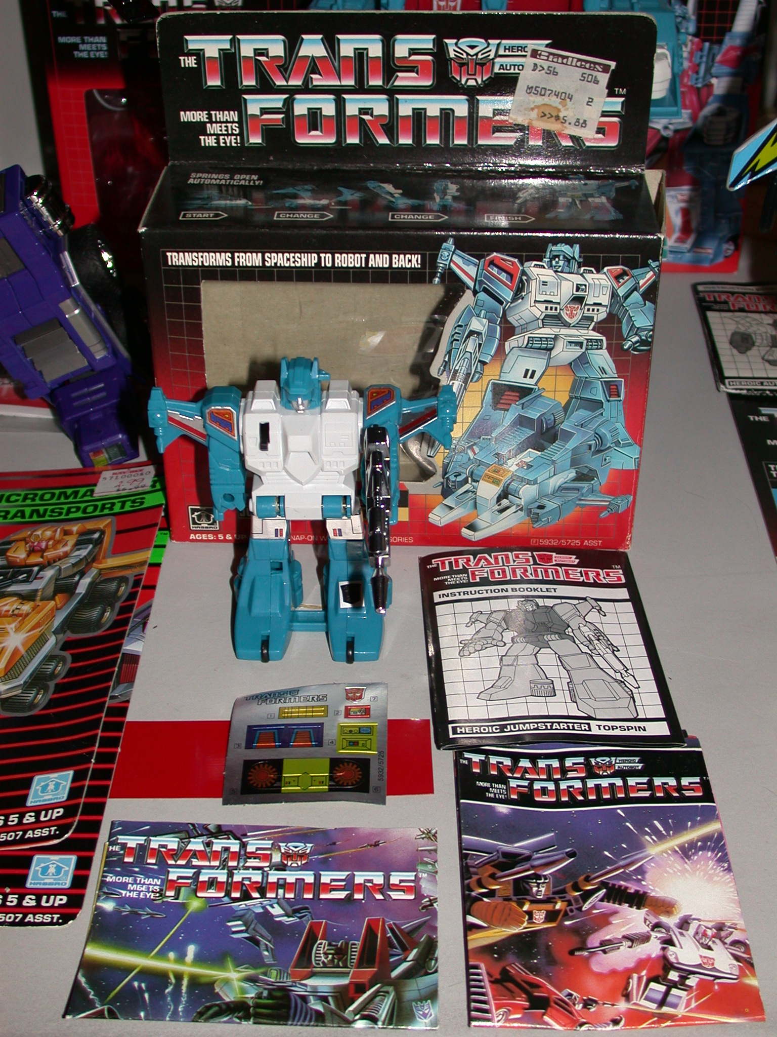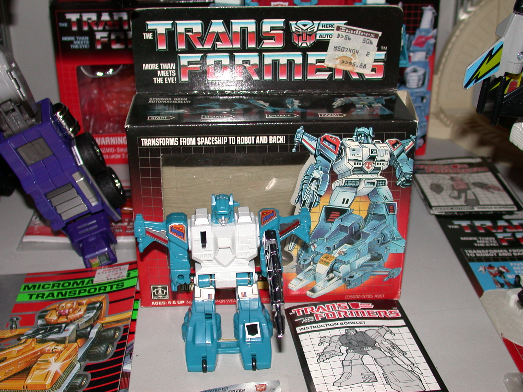 As anyone who has shopped on Ebay for Transformers knows, Jumpstarters can not be given away on the site. So besides the one I had as A kid, I have picked up two more. I have one that is mint and complete with his box, instructions and weapon, the Particle Beam Rifle. I also picked up another one before that just for its box, even though it was a bit worn. I did buy a set of labels from Repro-labels, and took apart my original and cleaned it so that I could make it look nice again. Unfortunately, I bought the labels before they offered them precut, and I have been reluctant to break out the cutting tools and ruin the sheet. I need to do that soon though.