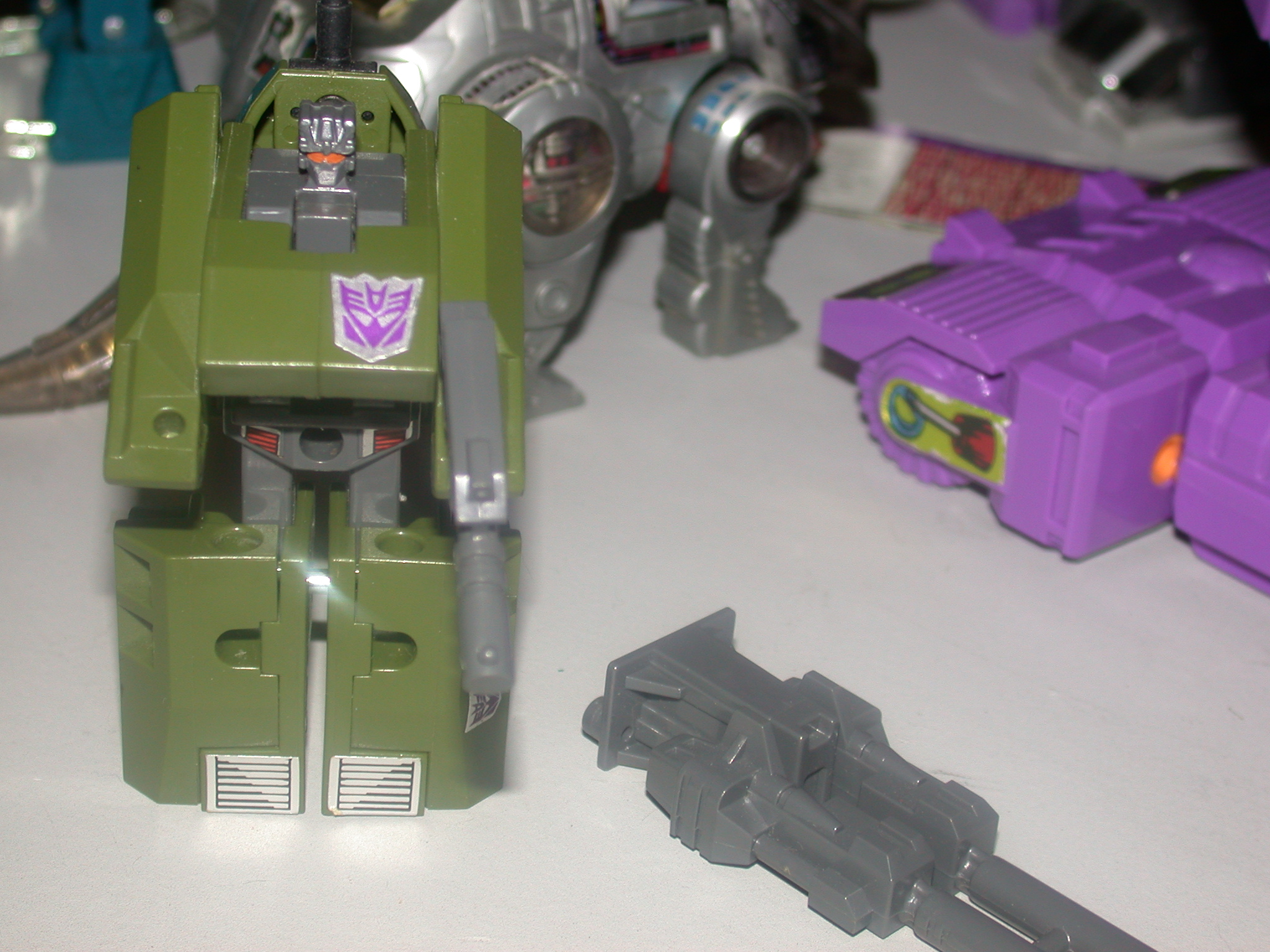 THE REST OF MY BRUTICUS IS IN PRETTY GOOD SHAPE, AND I HAVE MOST ALL THE WEAPONS AS YOU CAN SEE. MOST STICKERS show moderate play wear, AND JOINTS ON ALL THE COMPONENTS ARE PRETTY TIGHT. LOOK AT THE INDIVIDUAL PAGES FOR MORE INFO.**