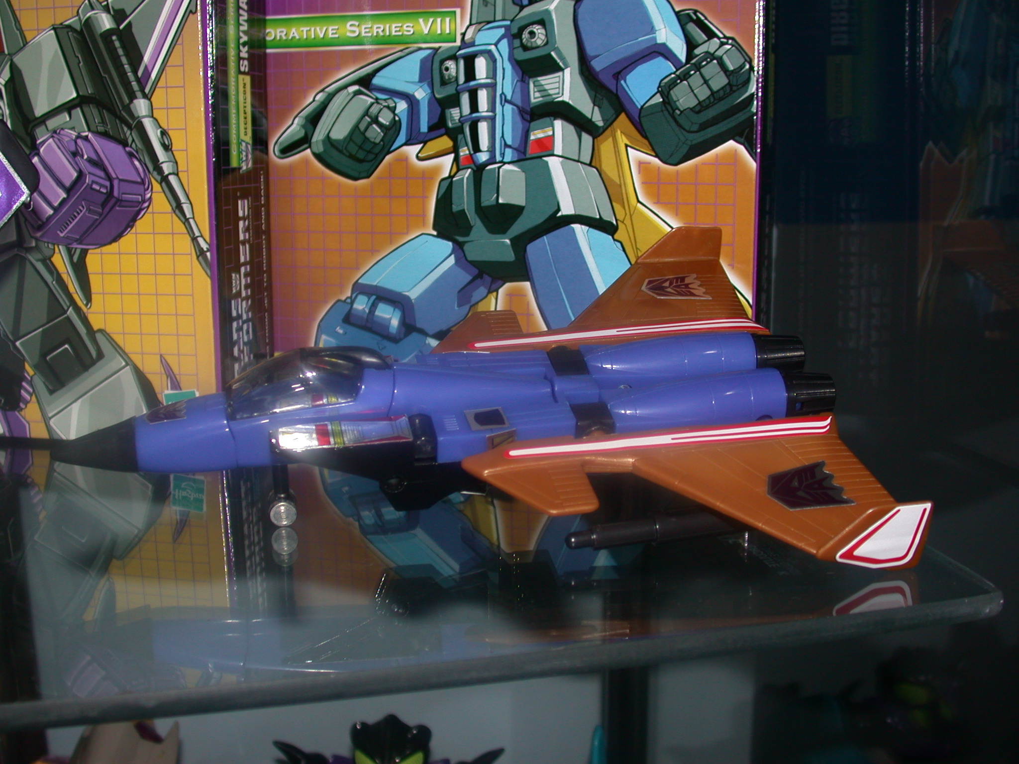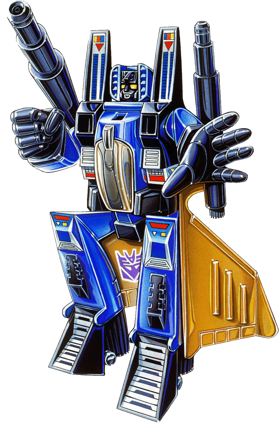 The sound of his engines causes petrifying fear in those who hear them. He's a master at handling fear... other Decepticons are put off by his mournful, silent ways. "He gives me the creeps," says Ramjet. He carries two concussion missiles. Needs to control a situation; otherwise, he too falls victim to fear, making him useless as a warrior.