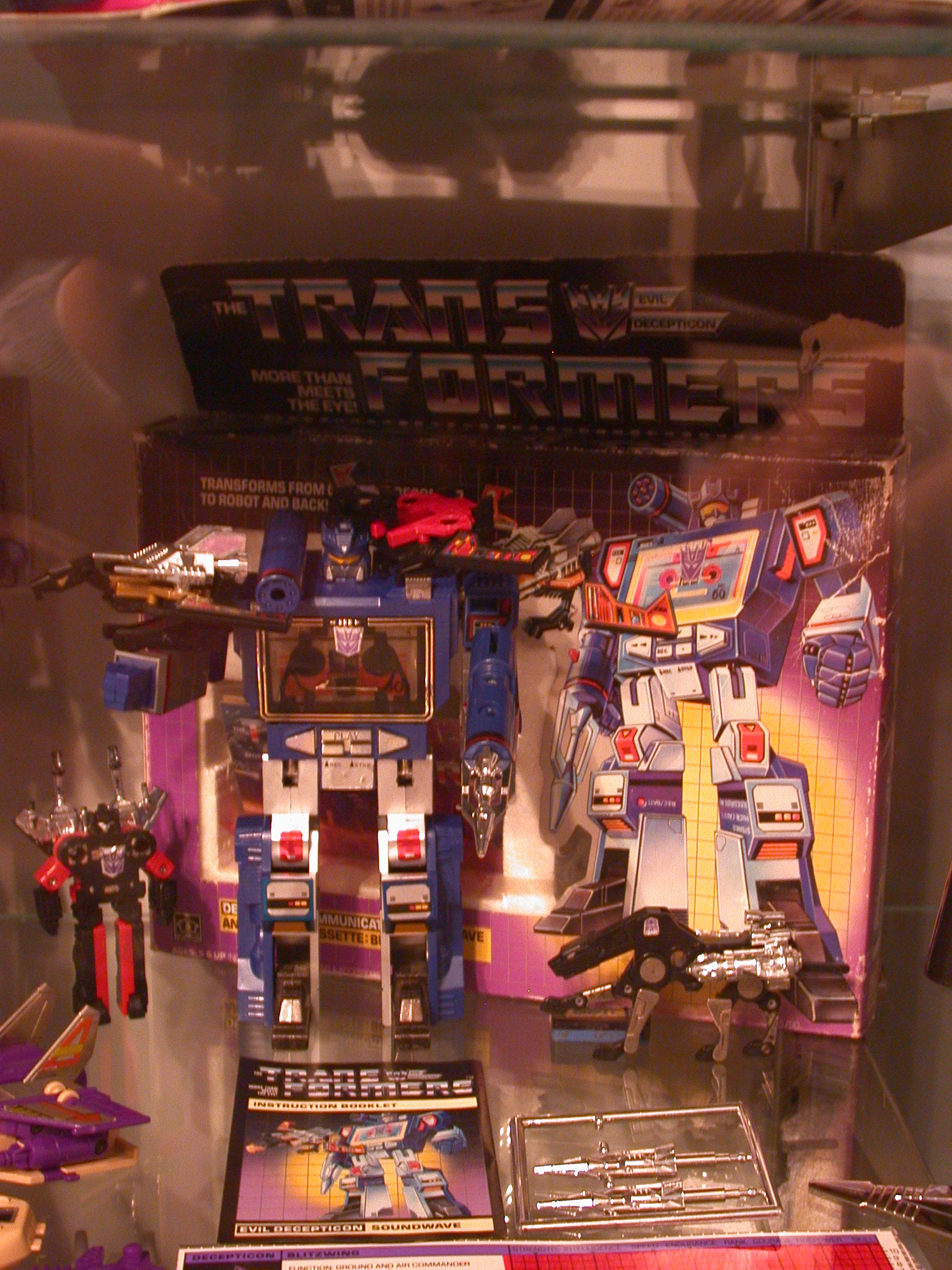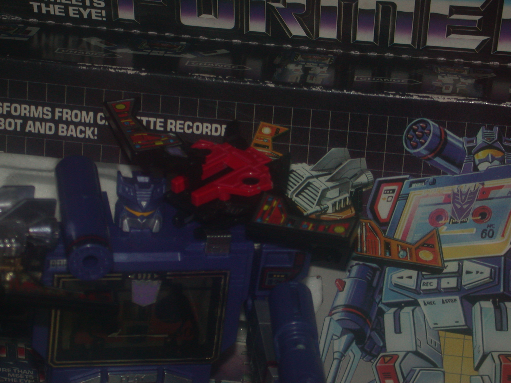 **Below is the picture of my Laserbeak. His condition is near perfect, but unfortunately, I have no weapons for him. I also have a Laserbeak in Soundwaves chest, but it has no head, or weapons.   Also is a picture of my personal Soundwave, kind of the crown jewel of my collection, due to him being my one original in  almost perfect condition.  While not in perfect shape itself, I still have the box and styro-foam in great condition.  I have all of his weapons including two of the original missiles still on the tree, and the used sticker sheet.  His included Buzzsaw is also perfect, including his stickers and weapons.**