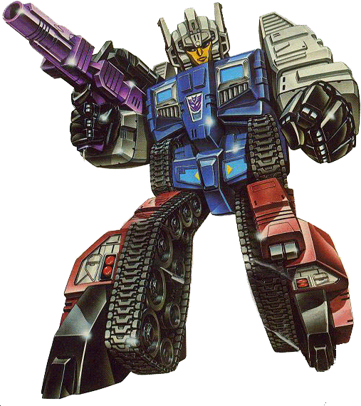 Abilities: In tank mode, Quake is capable of leveling an entire Class 5 Autobot defensive installation in minutes. He has a maximum speed of 75 miles per hour and a range of 250 miles. His titanium-alloy treads are coated with a special adhesive that enables him to climb up sheer cliff surfaces. He is equipped with a powerful plasma cannon which has a range of 40 miles. Tiptop transforms into a gyroscopic destabilizer, which destroys the balance of any target it hits. Heater transforms into a double photon pistol. In either tank or robot mode, Quake can use the two Nebulans in their weapons modes either singly, together or combined into one weapon.