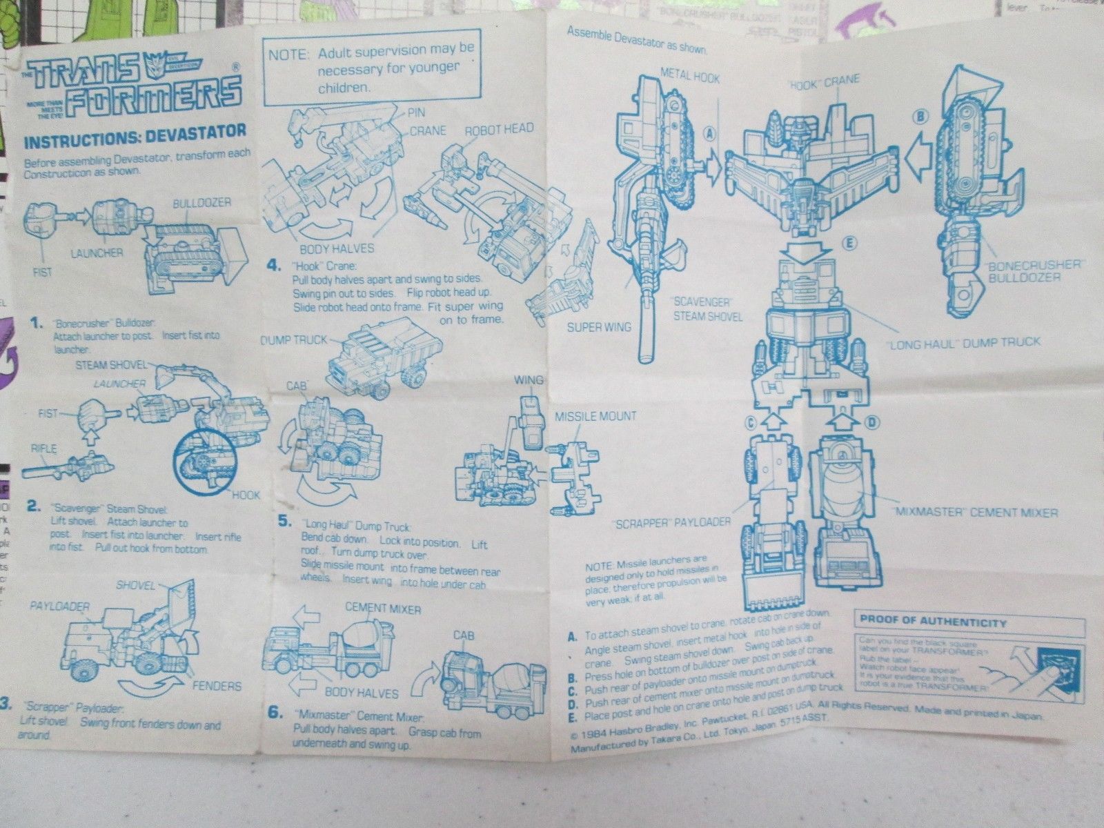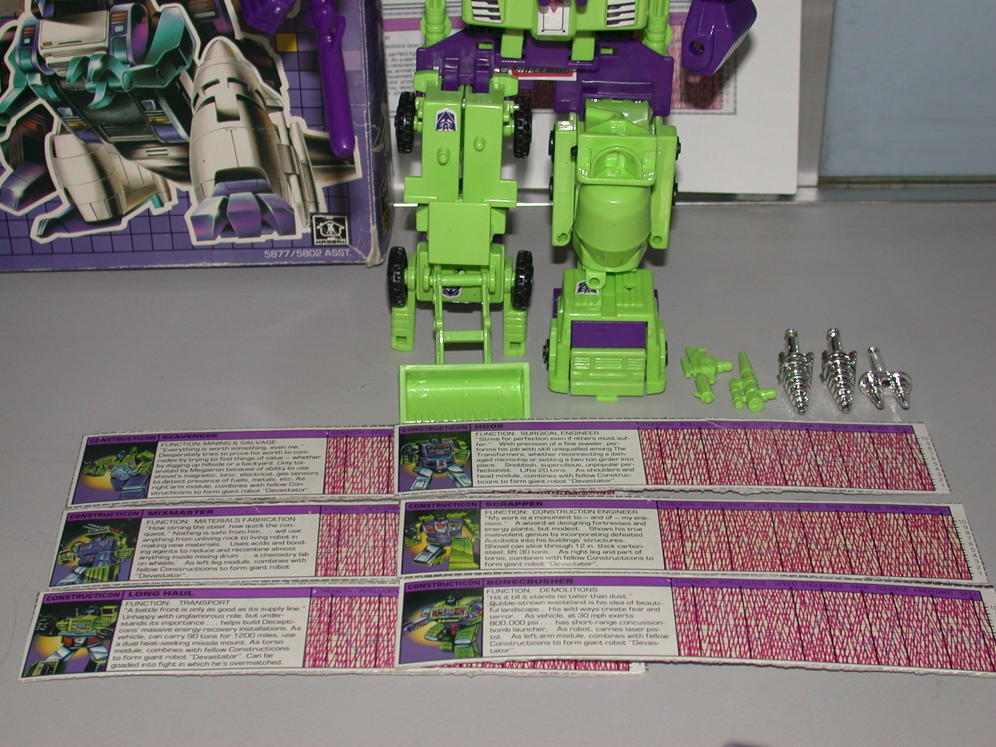 ** Devastator has been that one elusive holy grail of G1 that either didn't have the ability to get as a kid, or have not gotten for many various reasons as an adult. That finally changed on August 7th, 2015 when I finally got a good one in a deal on eBay. As shown in the photos, it came complete, including the backer cards, from each individual Constructicon.