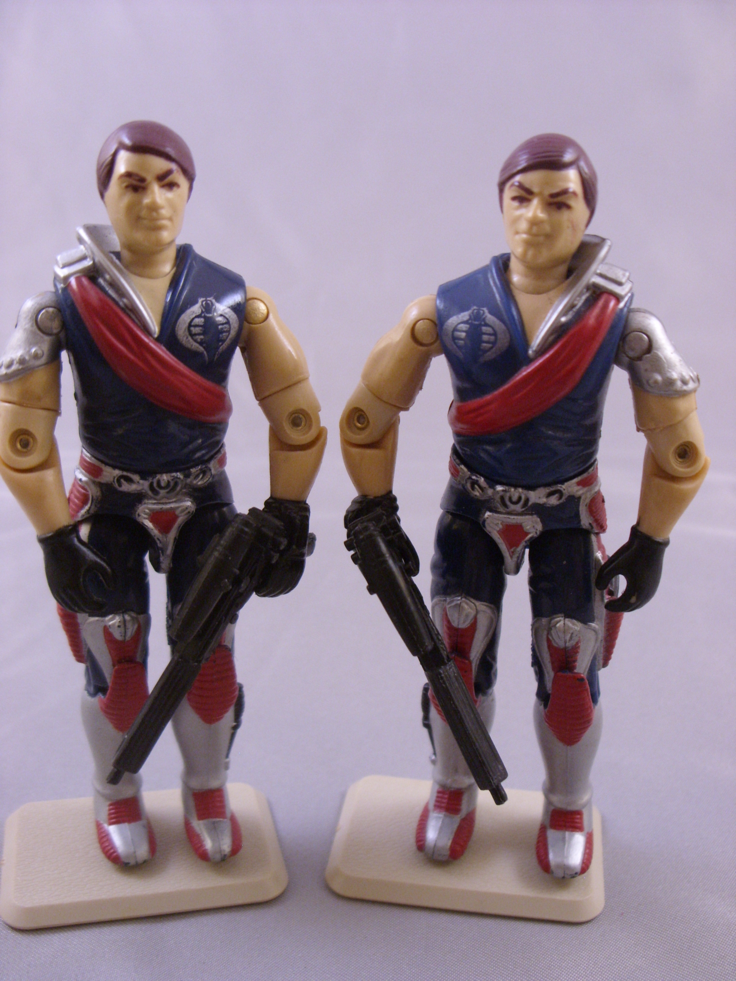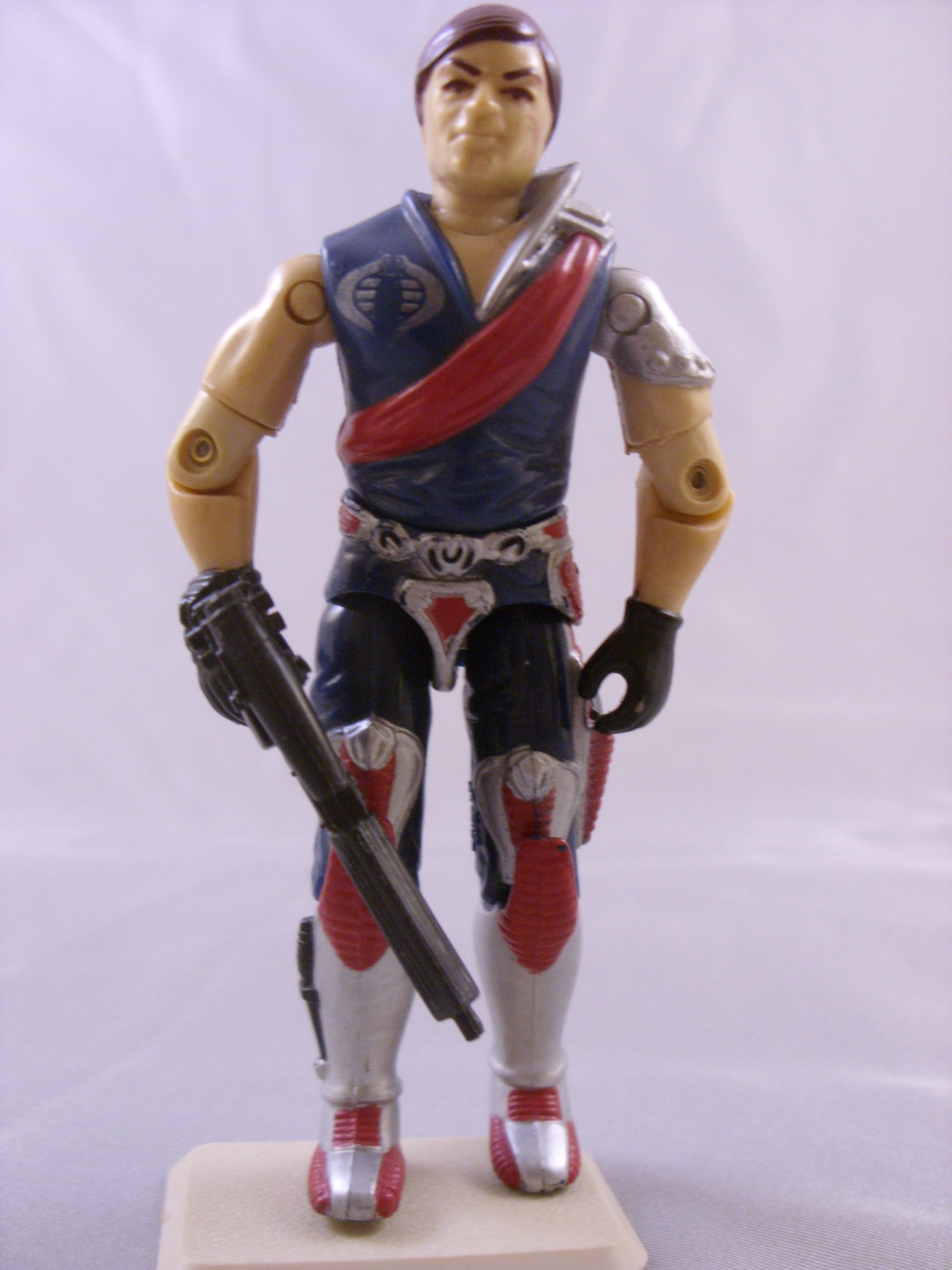My Personal Notes: I always found these guys crazy.  As a kid, I thought they really looked cool, and had a cool position being the head of the Crimson Guard.  But I have to admit, that even as a kid, I thought it was a little too over the top how they acted with each other.  So I really liked them, but at the same time cringed.  Mine are complete with their rifles and with the swing, though the string is looking a bit messed up with all the play it got.  I have had and have enjoyed this guy since childhood.